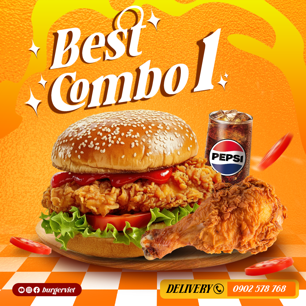 🔥 BEST COMBO #1: BURGER GÀ - ĐÙI GÀ - PEPSI