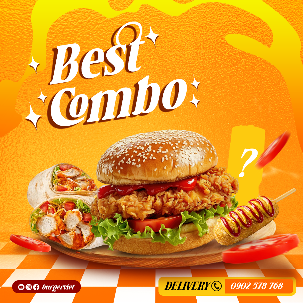 🔥 COMBO BEST SELLER #1: BURGER GÀ - TACOS GÀ - HOTDOG HÀN QUỐC - NƯỚC NGỌT BẤT KỲ